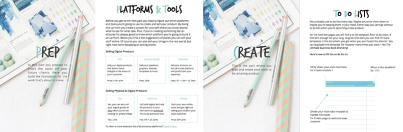 This is the part where you outline, plan and create your product. You also get to fill in worksheets about pricing, your refund policy and more.